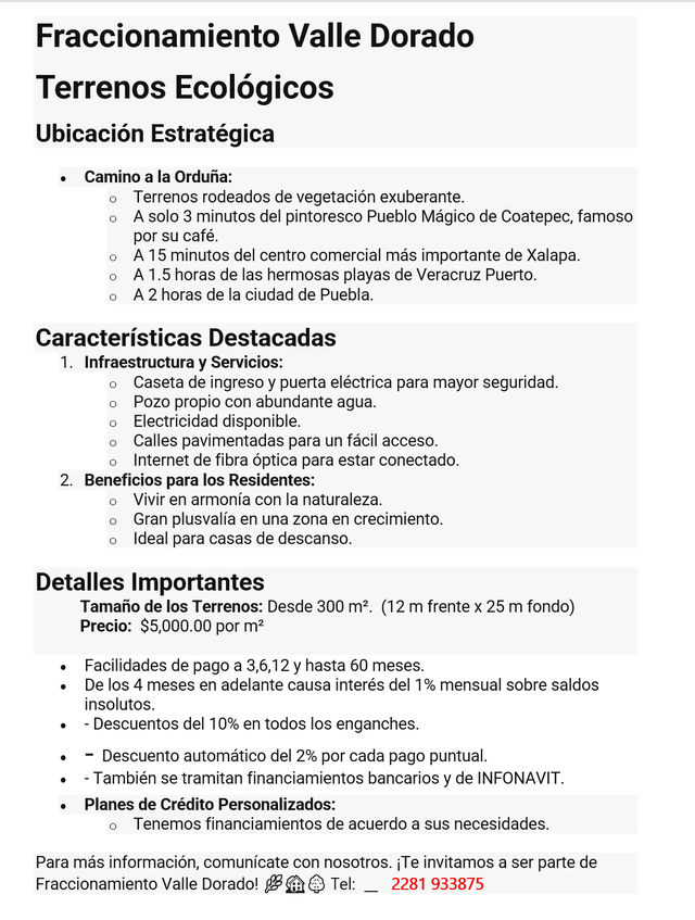 Le gustaría adquirir alguno de estos lotes, por favor díganos como lo pagaría, para poder programar una visita al fraccionamiento.